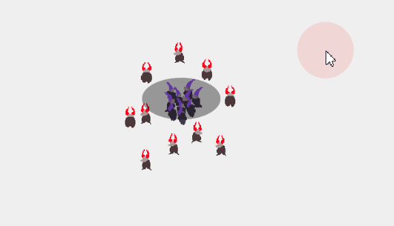Fogo est un jeu de contrôle de foule dans lequel vous serez amené à incarner un leader impartial (violet) dominant son groupe d'unités aux personnalités différentes.